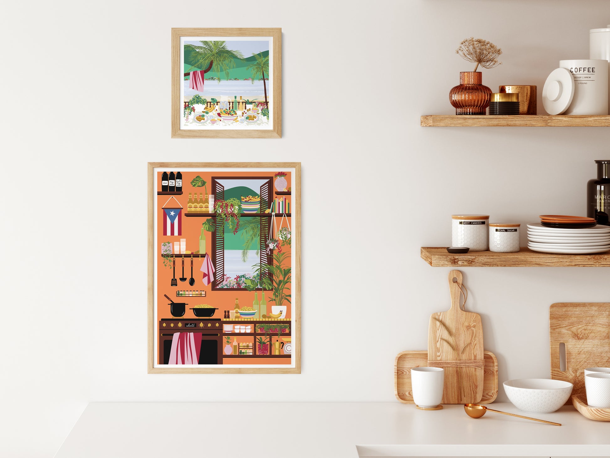 A Puerto Rican kitchen featuring Medalla beer and arroz con gandules on the stove. Plants decorate every corner. Perfect for your foodie and plant enthusiast loved ones.